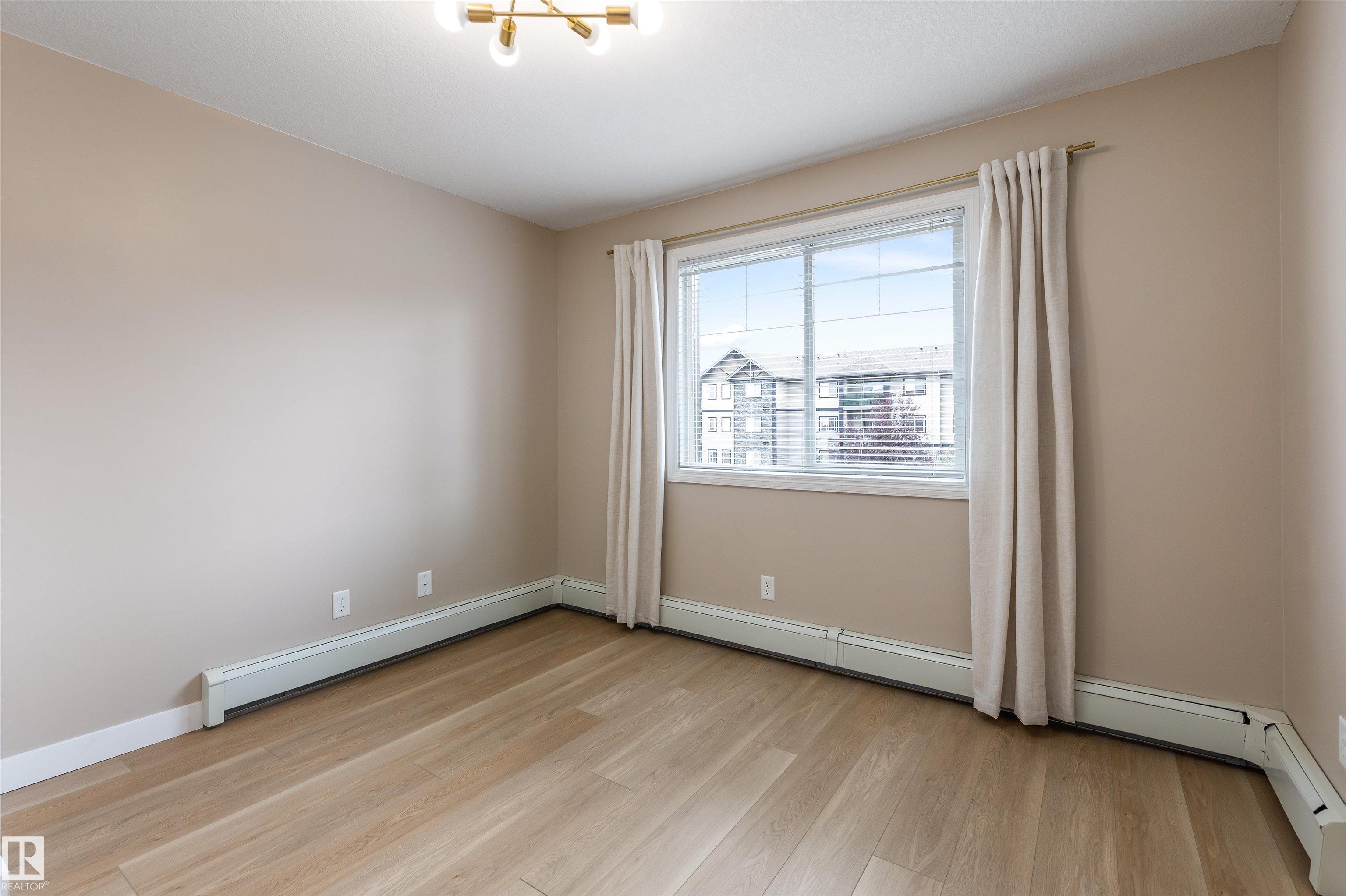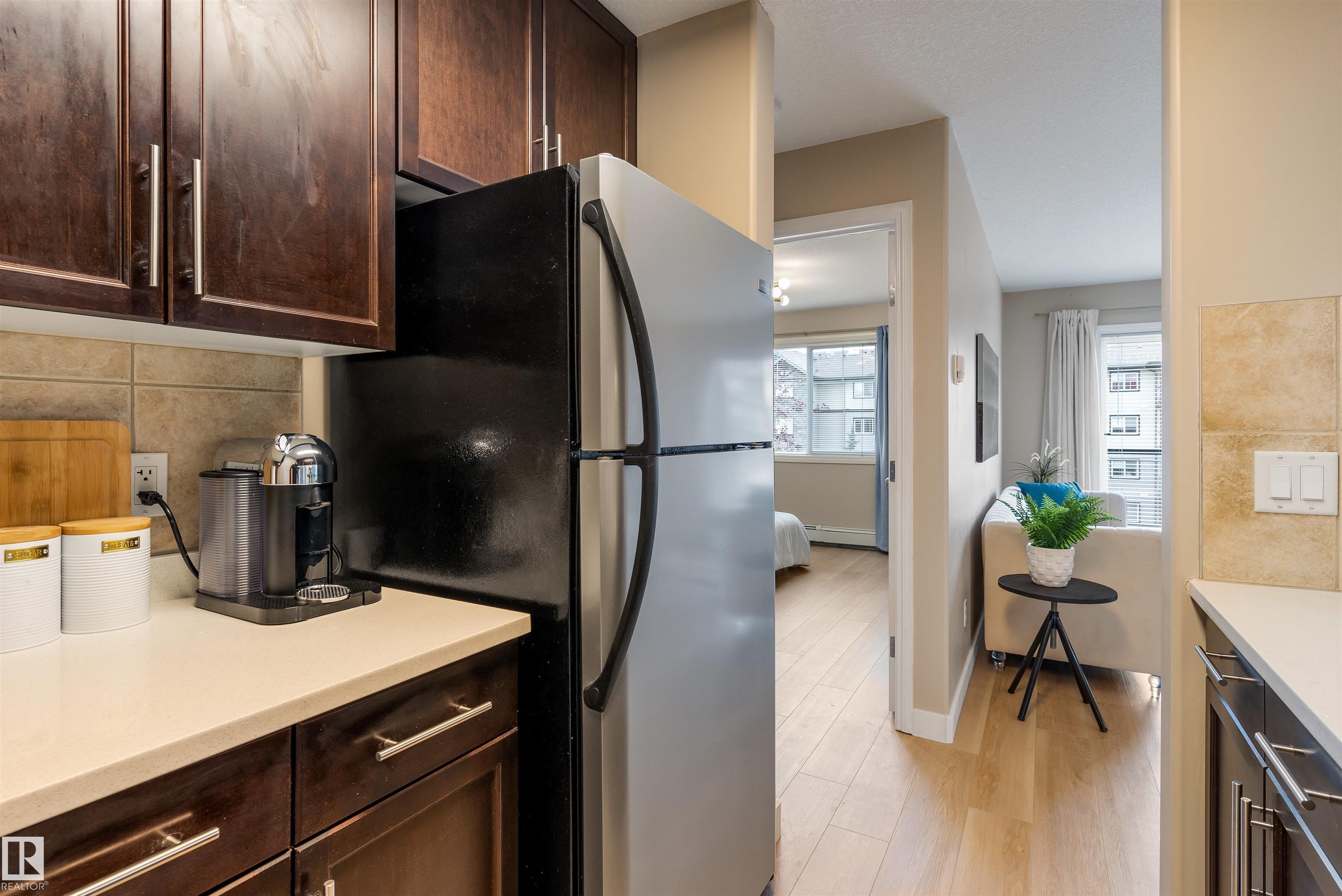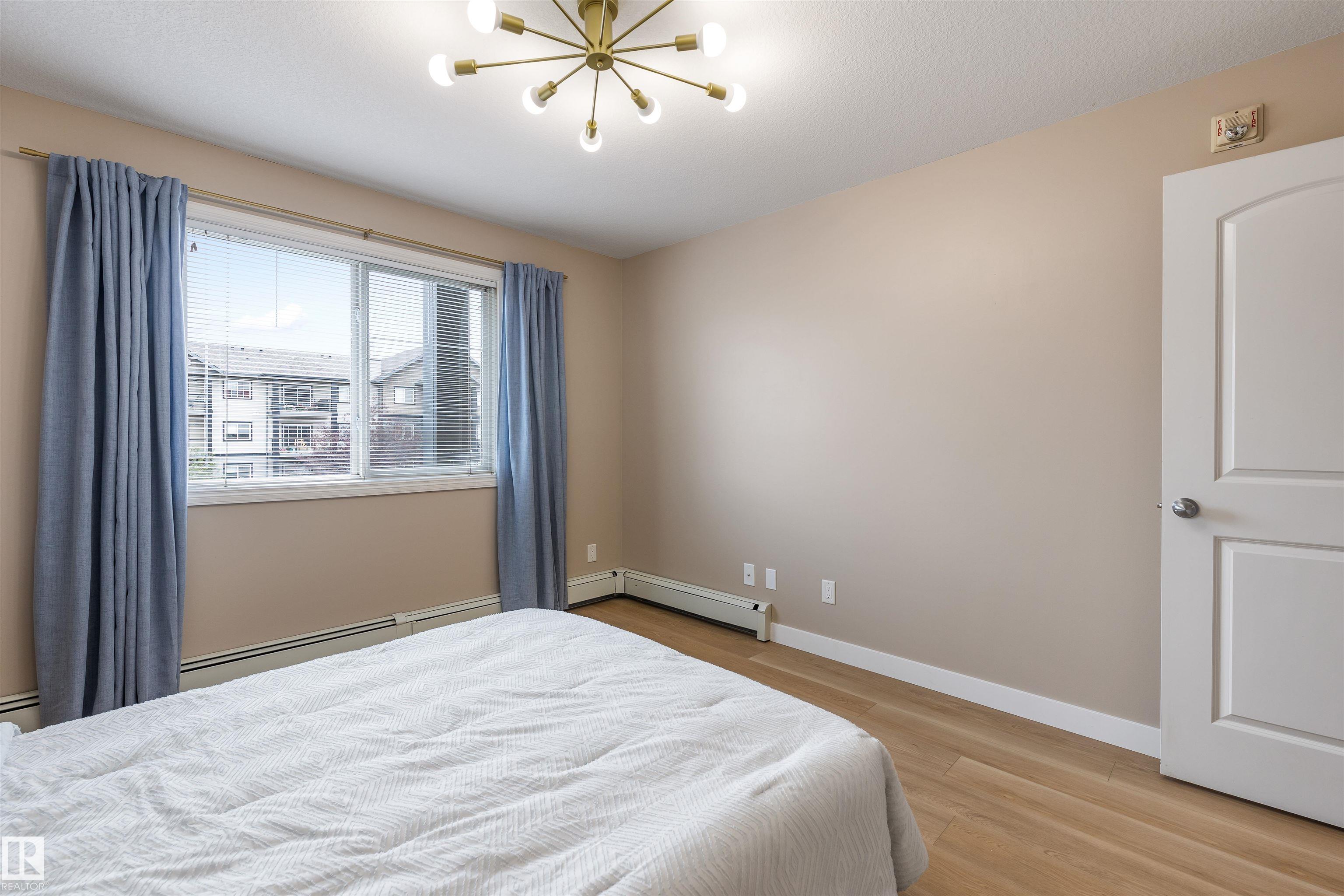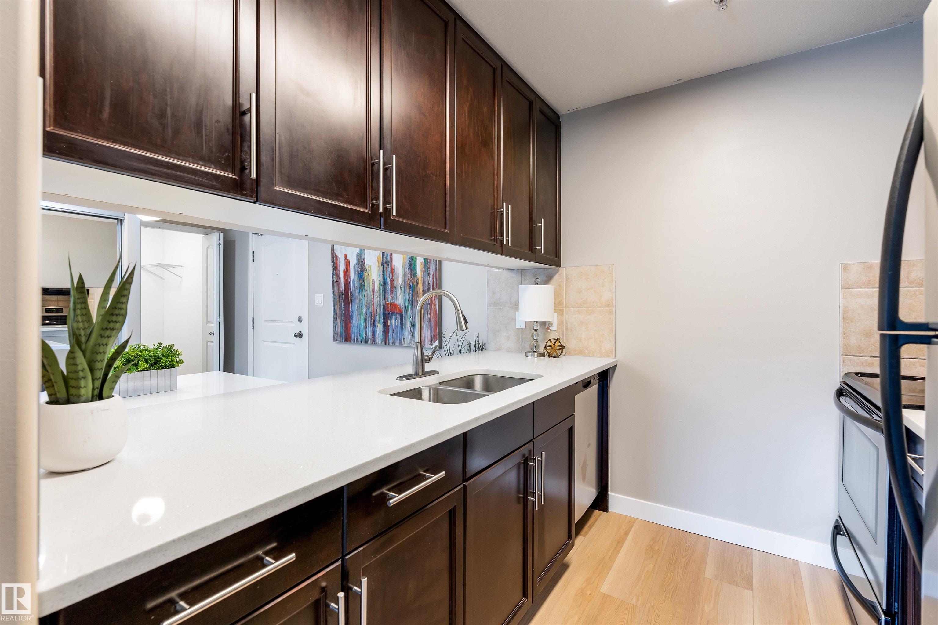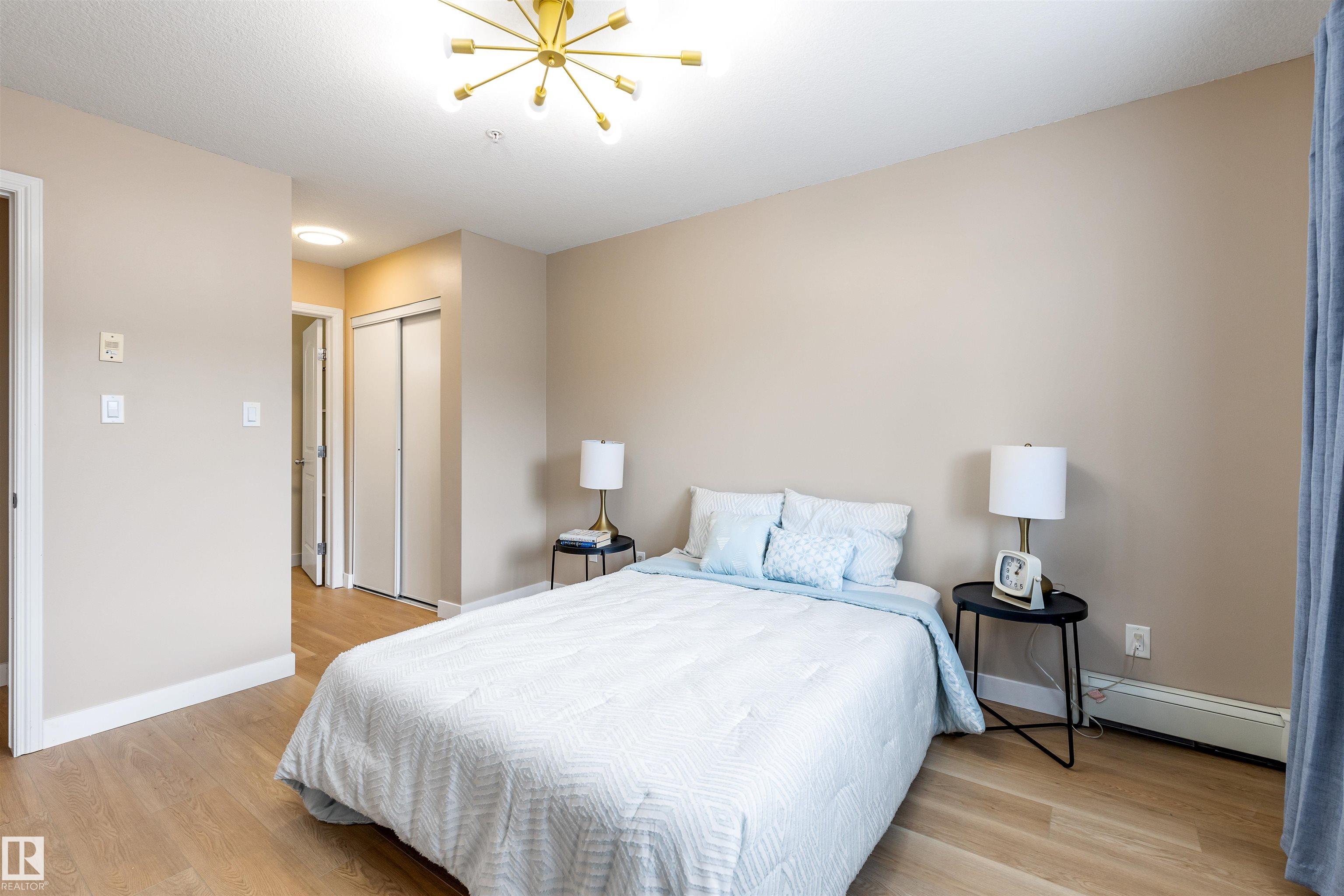 Welcome to this RENOVATED condo in the highly sought after community of South Terwillegar. This delightful 2 bedroom/2 bathroom unit offers 854sqft in an incredible location close to all amenities. The kitchen features a pass through to the dining space, full height cabinetry with ample storage space and gleaming new QUARTZ counters/undermount sink. The living space features new VINYL PLANK FLOORING that flows throughout. There is a large balcony complete with gas hook up for a bbq! The primary bedroom has a three piece ENSUITE, built in linen closet and a walk through closet. The spacious second bedroom offers a good amount of closet space as well. This home has an assigned UNDERGROUND PARKING STALL and a titled storage unit for your convenience! Freshly painted, new flooring, lighting, quartz and so much more. Quick possession!