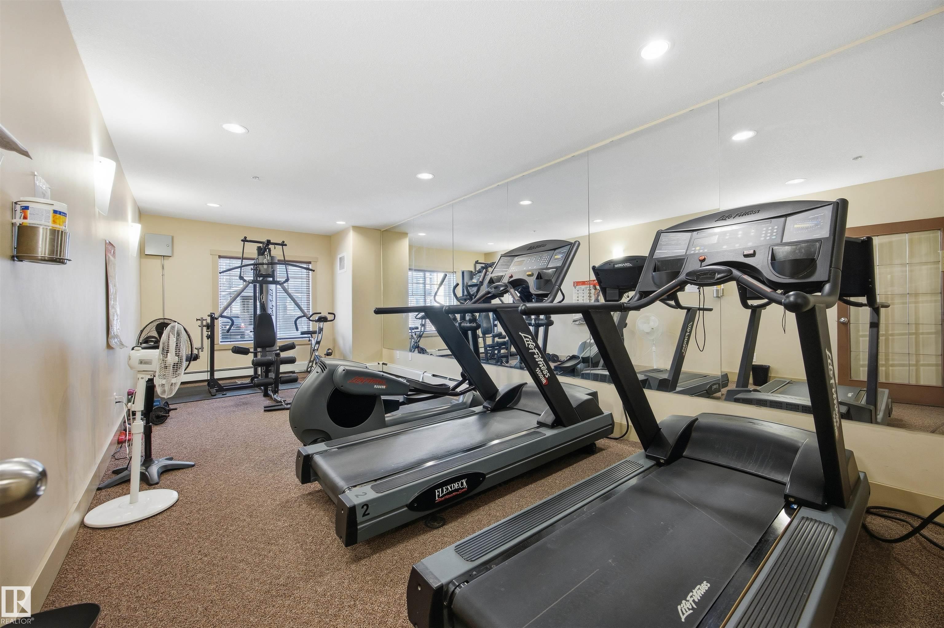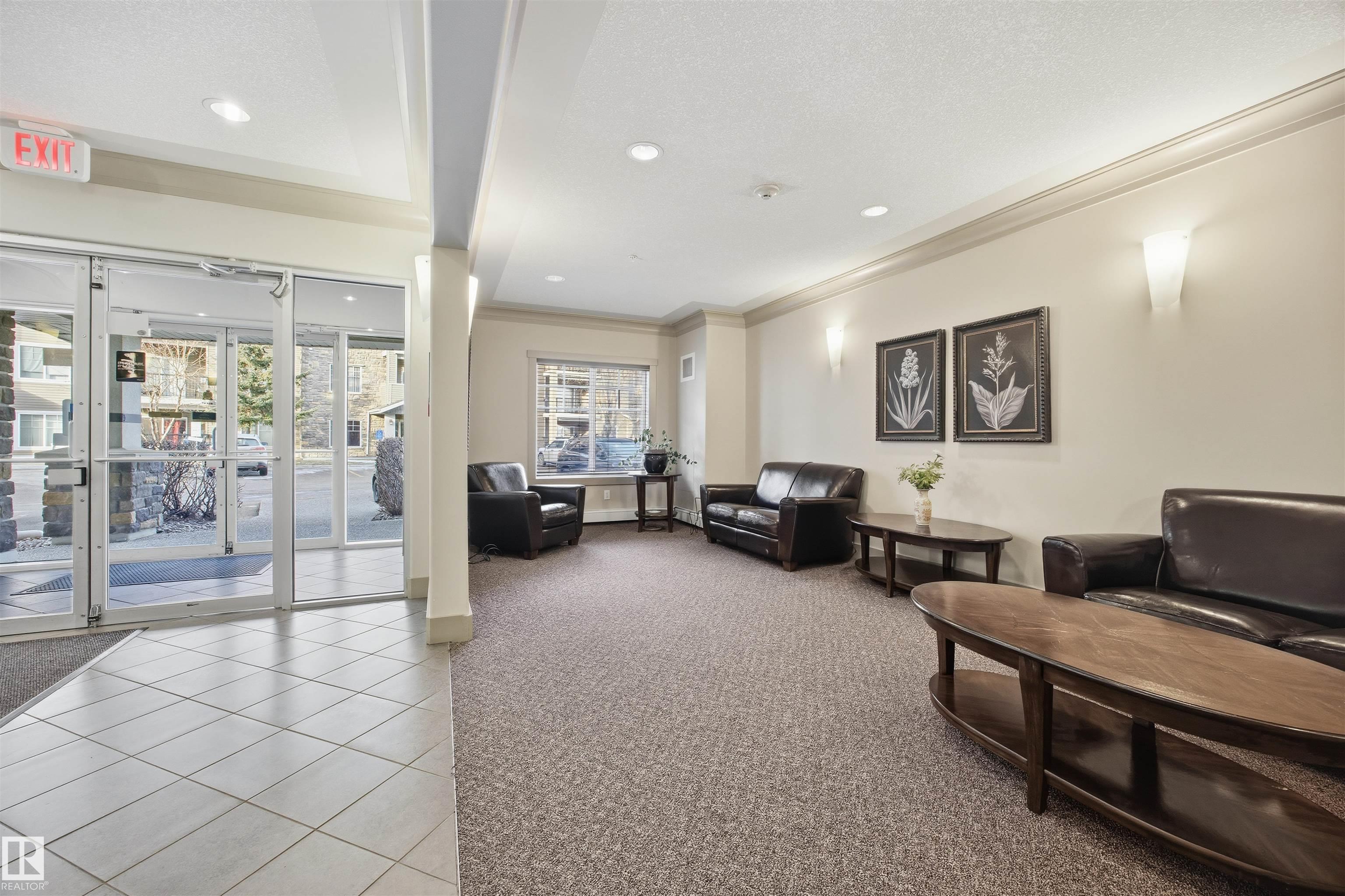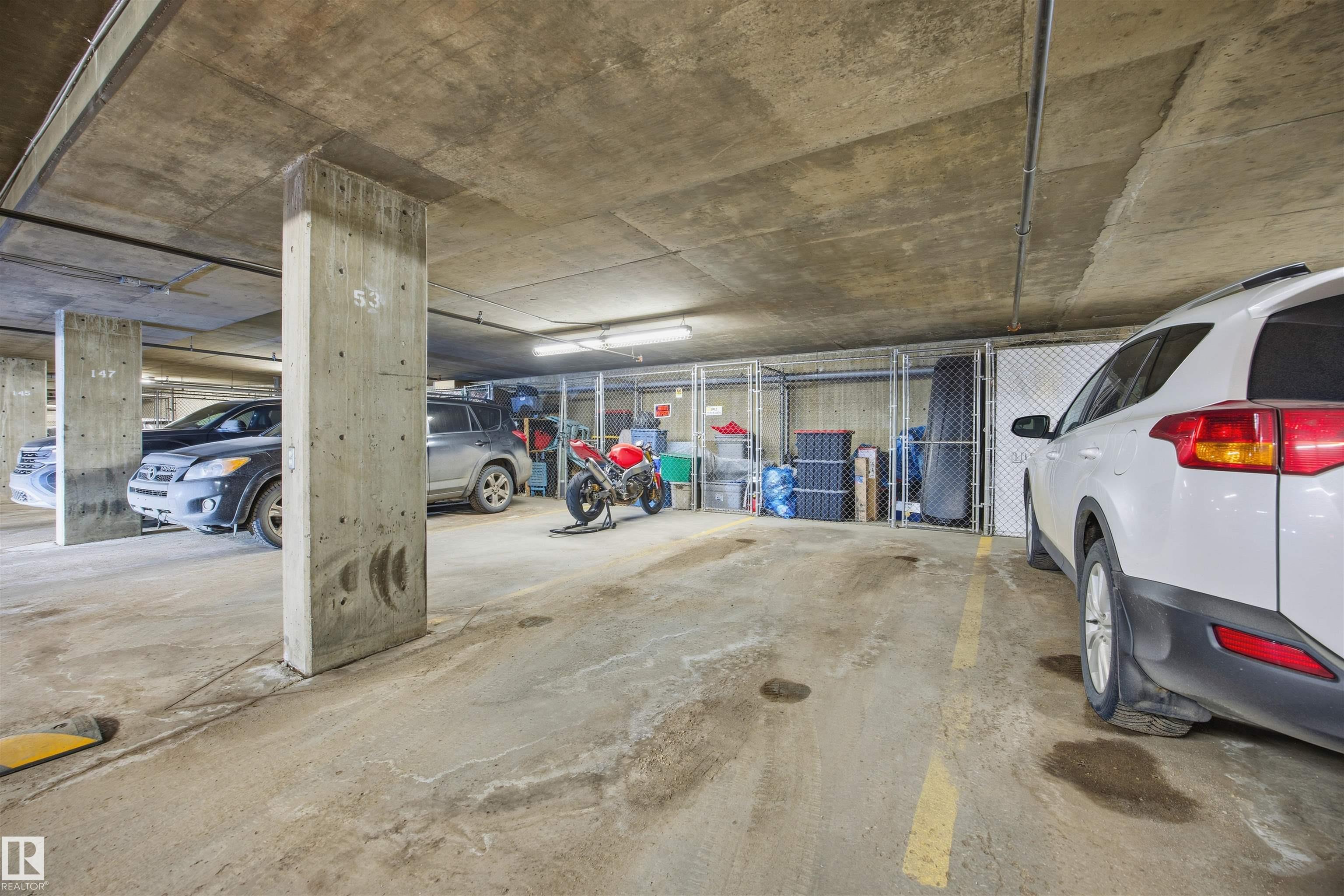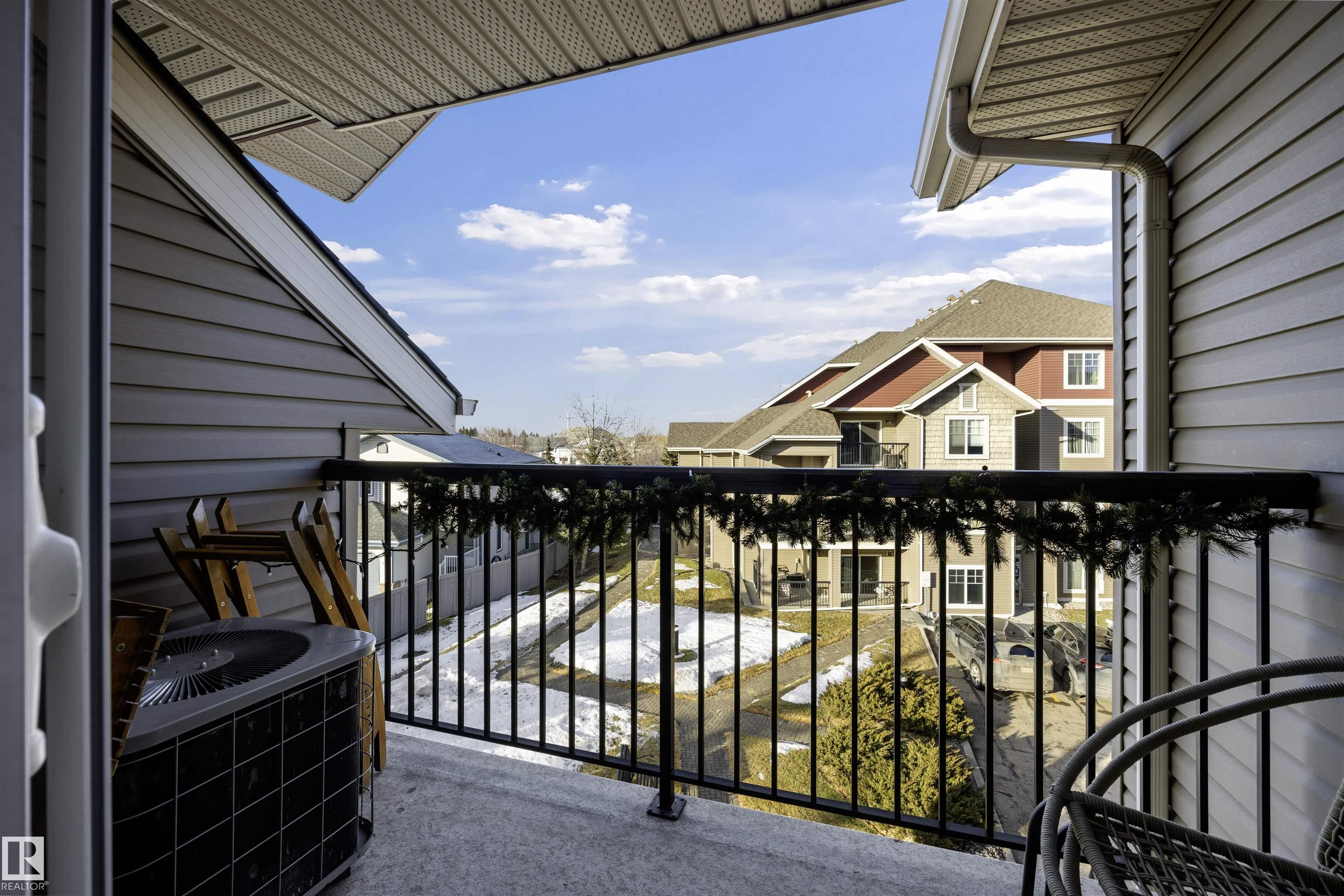 TOP FLOOR. TURN KEY. PRIME WEST END LOCATION. CENTRAL AC! This refreshed & spacious 1 bed, 1 bath, 723 sq ft condo checks every box. The open concept kitchen, dining & living area offers bright & functional layout that feels larger than expected. Many modern updates including fresh paint, white quartz countertops, sink, faucets, stainless steel appliances, light laminate flooring, washer/dryer, all completed in 2023. Kitchen has beautiful oak cabinetry & ample storage. Generously sized living room features NG corner fireplace & access to private balcony w/ NG BBQ hookup, overlooking quiet courtyard. Spacious bedroom oasis, functional 4 piece bath & rare large in suite laundry room w/ extra storage & counter. Plus titled UNDERGROUND parking & caged storage. All in a well managed complex w/ fitness & social room, visitor parking, pet friendly & low condo fees $410.23 including heat & water. Just 5 minutes to West Edmonton Mall & walking distance to Terra Losa Shopping Centre, transit & everyday amenities.
