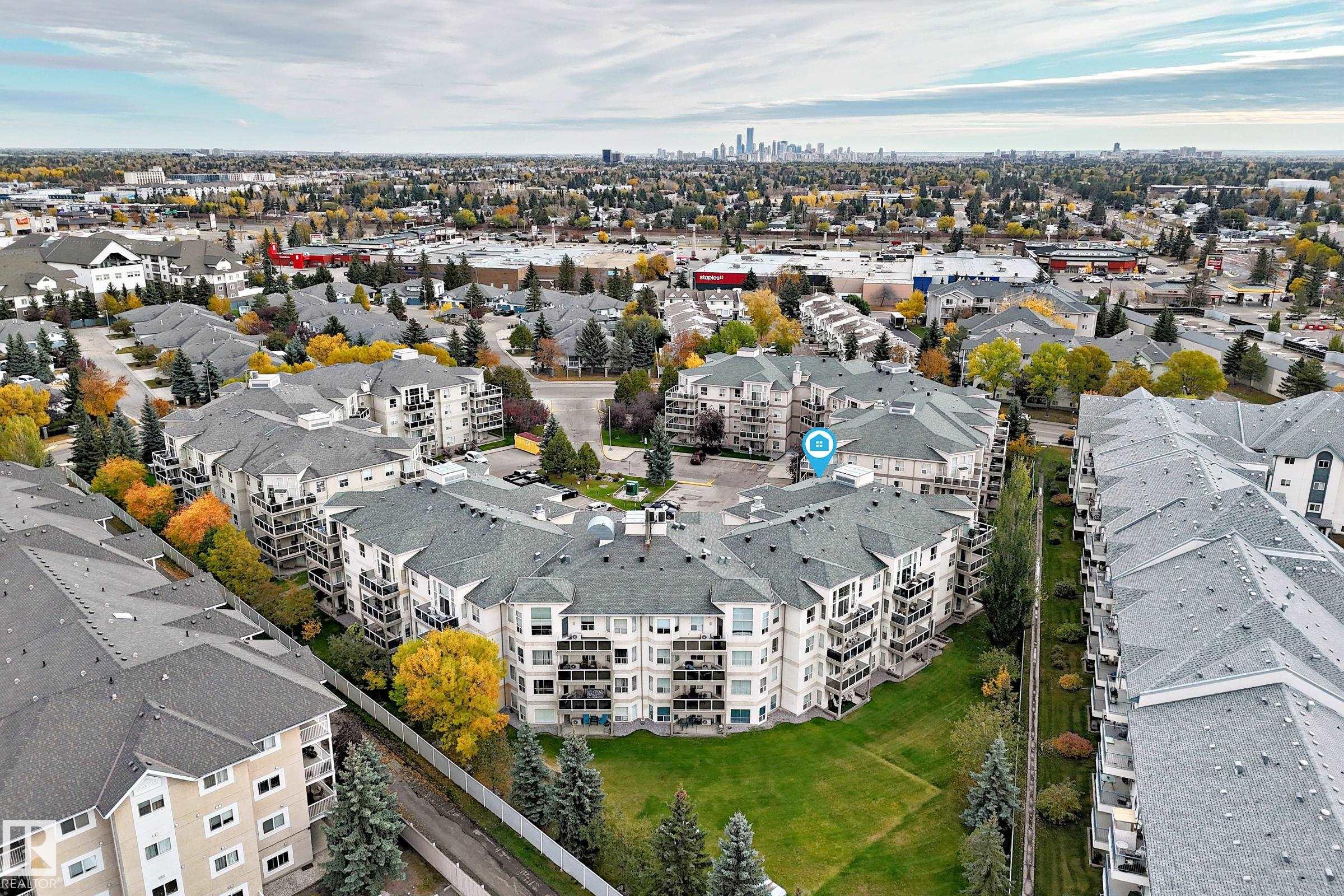 This unit truly has it all! 2 bedroom, 2 bathroom, 2 titled parking stalls, central A/C & fireplace. End unit on the main floor w/ LARGE WINDOWS that invite you into your open concept living room, kitchen & dining room. There is a KING SIZED PRIMARY BEDROOM w/ 4 PIECE ENSUITE, a 2nd bedroom, & additional 3 pc bath w/ corner shower. For hot summer days, enjoy the CENTRAL A/C or your GROUND FLOOR PRIVATE PATIO overlooking tranquil GREEN SPACE! For colder days enjoy the GAS FIREPLACE & the TITLED HEATED UNDERGROUND PARKING w/ STORAGE LOCKER beside the stall PLUS there is a second SURFACE STALL RIGHT OUTSIDE THE UNIT! This adult only building is PET FRIENDLY w/ board approval, has ample visitor parking & amenities include EXERCISE ROOM, CAR WASH & SOCIAL ROOM. Condo fee includes heat, water & more. Walkable location w/ Grocery, Pharmacy, Shopping, Bus, Future LRT, Terra Losa Lake, Senior Center, Churches & West Edmonton Mall nearby. A wonderful opportunity to enjoy worry-free living!