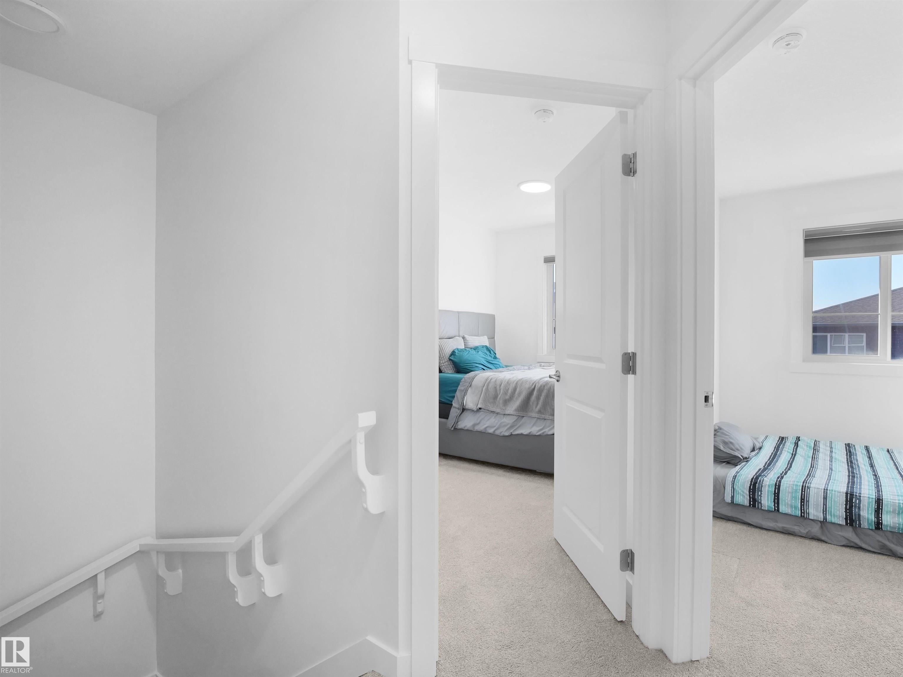 Welcome to this beautiful 2025-built townhouse in the vibrant community of The Orchards at Ellerslie. Offering 3 bedrooms, 2.5 bathrooms & an attached double garage, this home is thoughtfully designed for modern living. A welcoming foyer leads to a bright open-concept main floor featuring a stylish kitchen with quartz countertops, tile backsplash, stainless steel appliances & ample cabinetry. The kitchen flows seamlessly into the dining area with patio doors leading to the deck, while the spacious living room features large windows that bring in plenty of natural light and overlook the backyard. Upstairs you'll find a generous primary suite with walk-in closet & 4-pc ensuite, along with two additional bedrooms, another full bathroom & convenient upper-floor laundry. Unfinished basement offers excellent future development potential. Located close to everyday amenities. The community offers outstanding outdoor amenities including expansive green spaces, sports courts, ice rinks & much more.