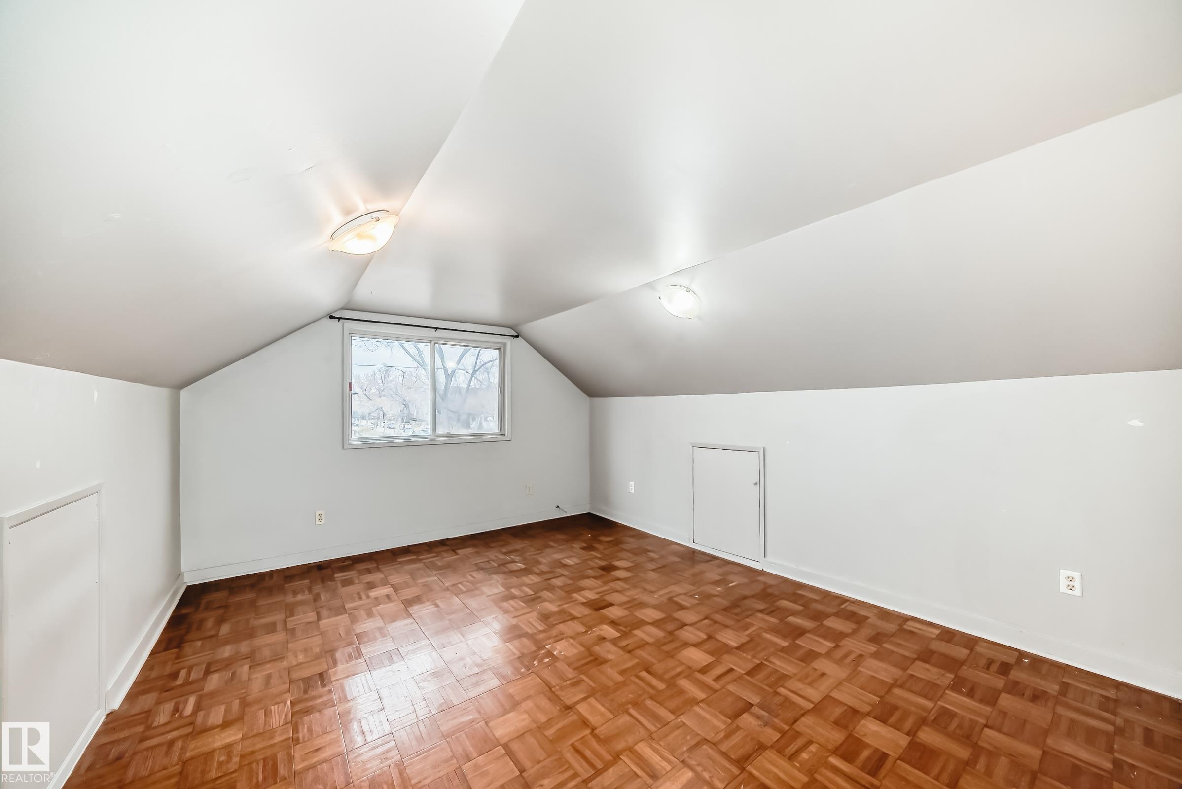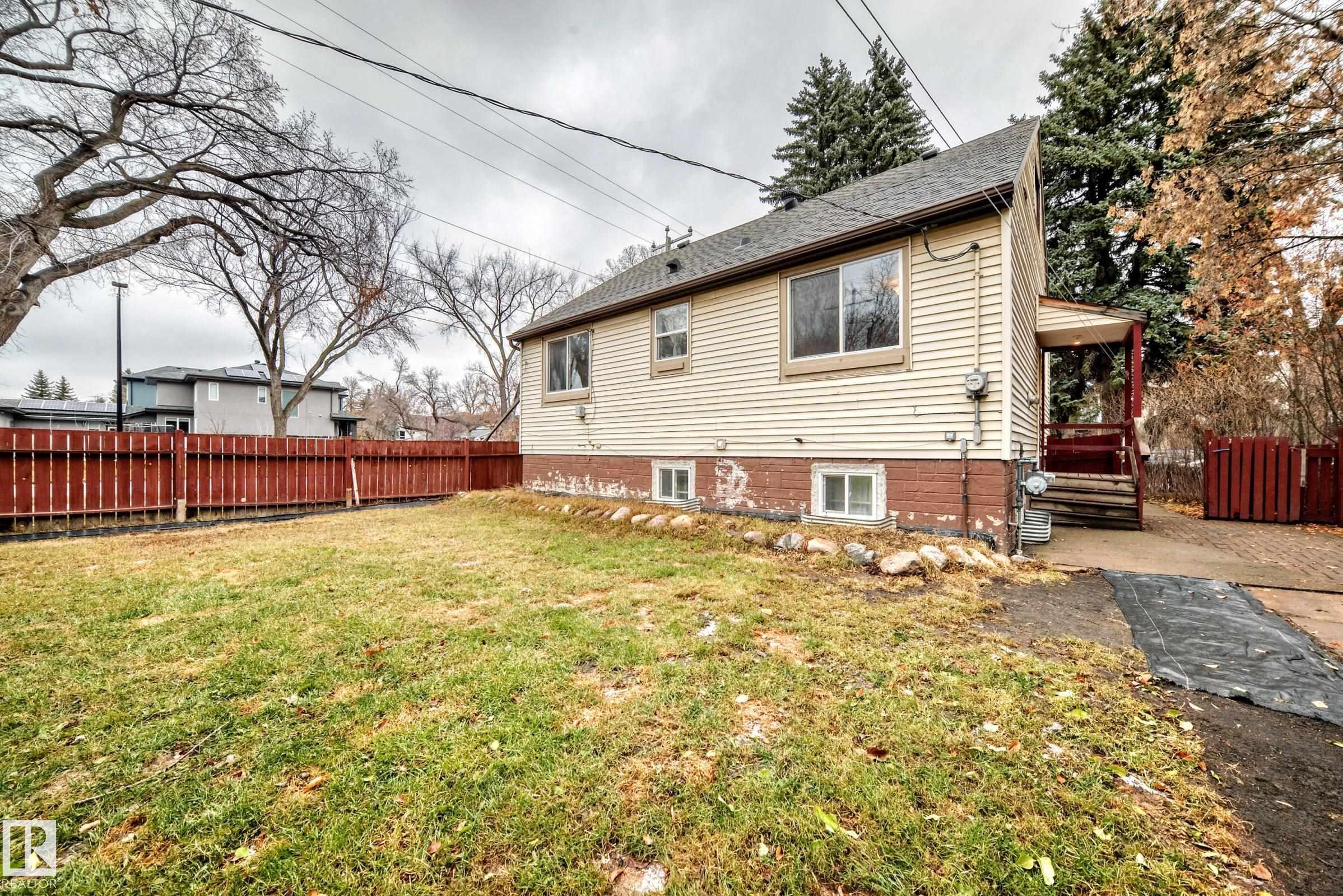 Location, Location !!! In The Heart of Westmount The Perfect 649 sq m corner lot, walking distance to schools, playgrounds, parks, spray park, Westmount Shopping Center, 124 street trending restaurants-all services- more shopping, public transportaion w very quick access to U of A, Nait, & City Center in one of Edmontons most Desired Communities. This delightful 1« storey character home combines timeless appeal with thoughtful updates in Featuring two spacious bedrooms on the main floor and a versatile bonus room area upstairs--perfect for a home office, studio, or guest space. This home offers flexibility for modern living. A bright living area and cozy dining space flow into a functional kitchen with plenty of cabinetry. Enjoy the mature, tree-lined setting with a private backyard ideal for relaxing or entertaining. This is a Great opportunity to own a classic Westmount charmer with excellent potential to futher upgrade, complete the partial developed bsmt or The Perfect LOT to Redevelope, BUILD NEW !