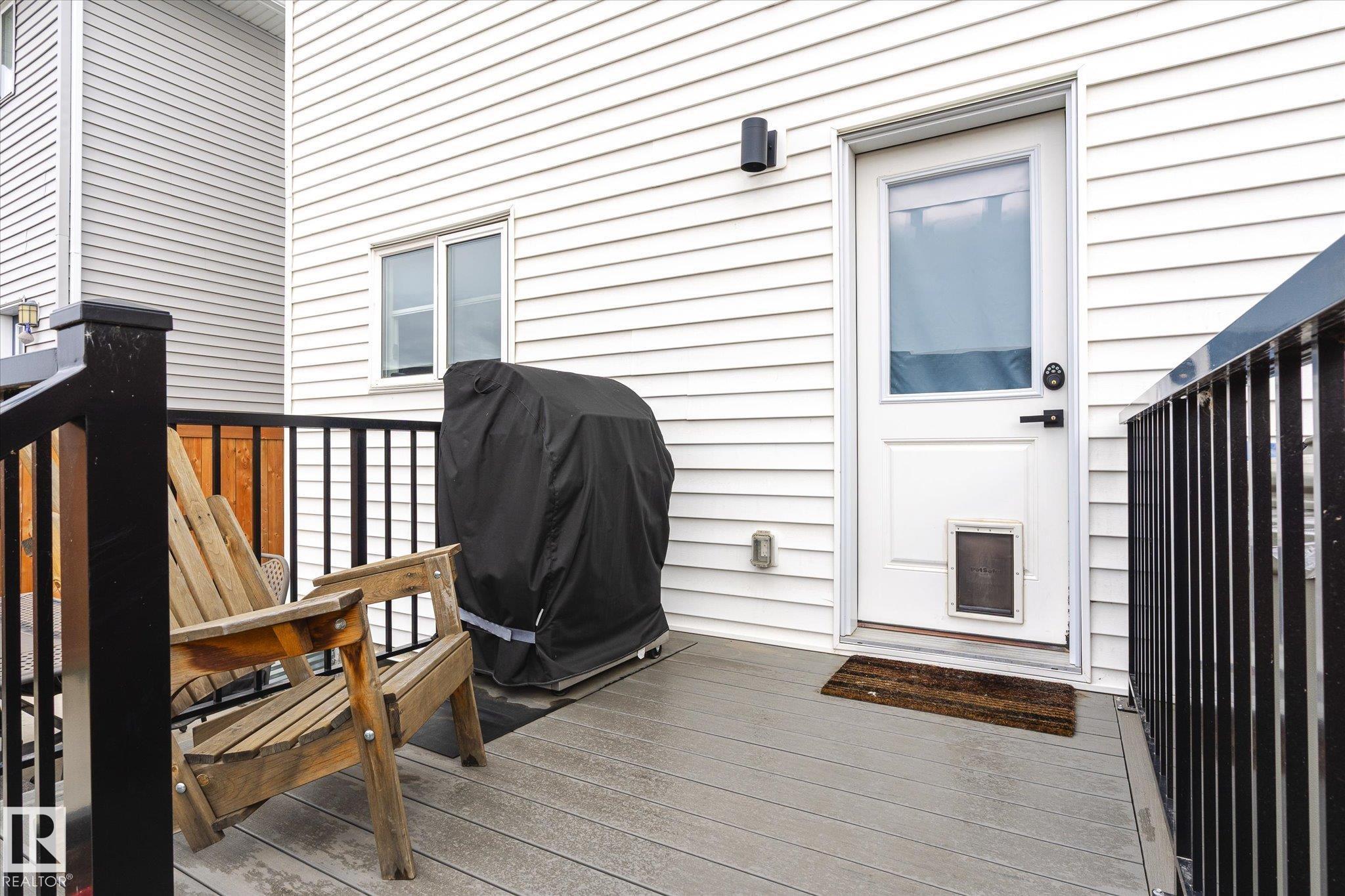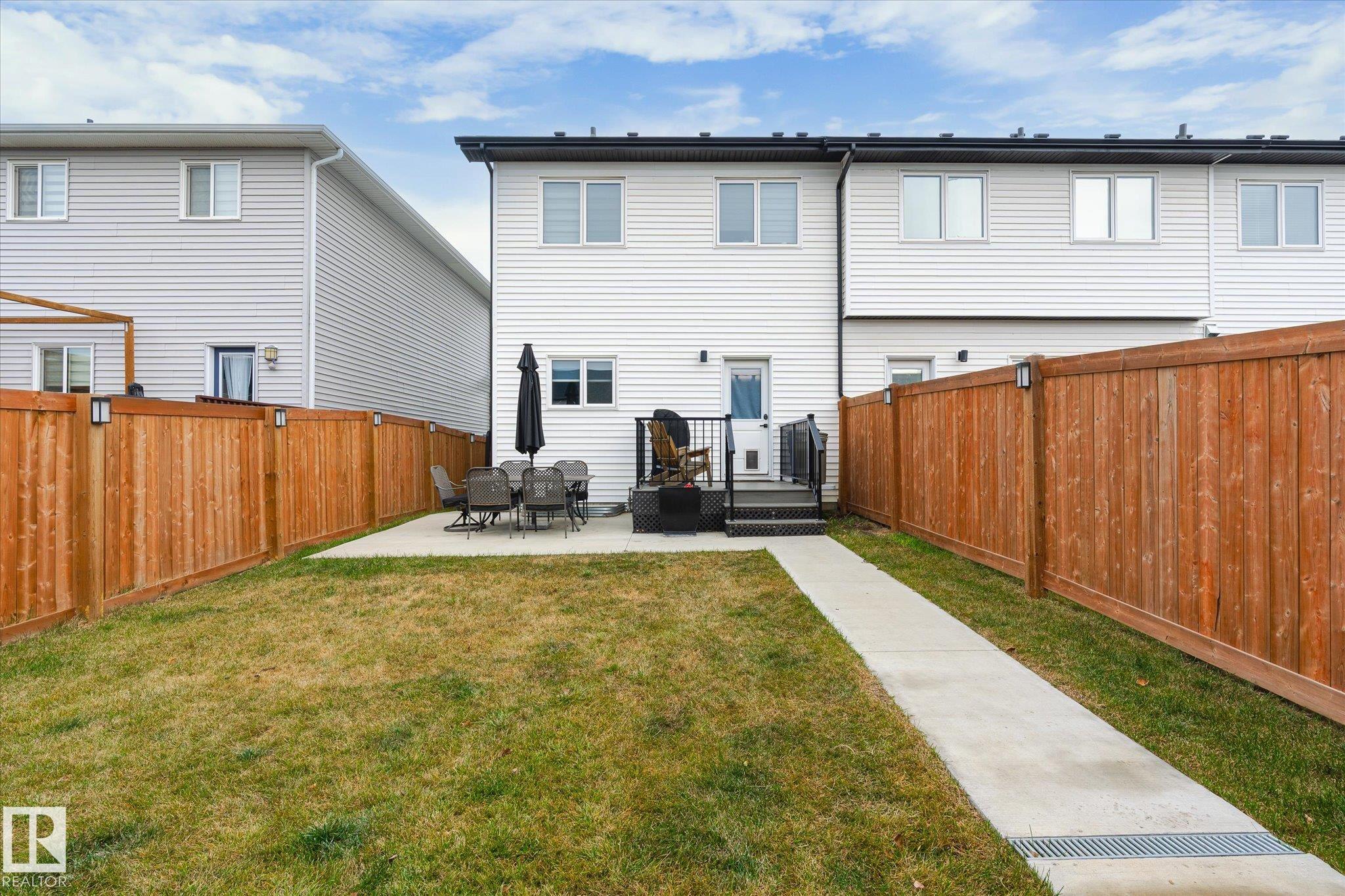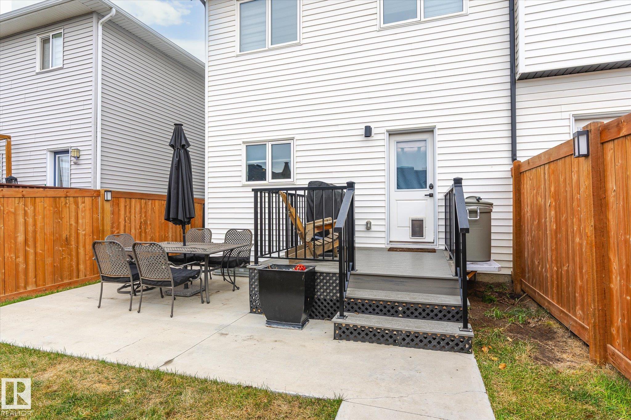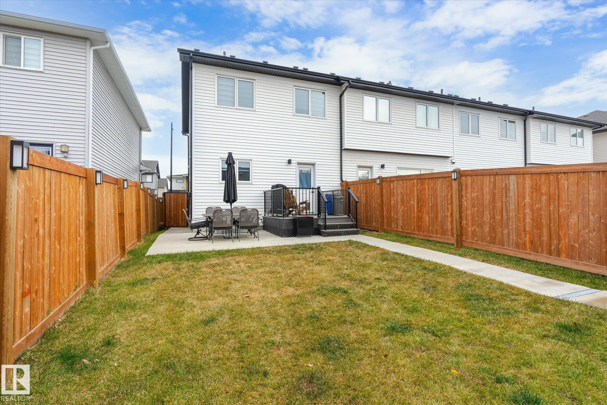 Stunning from the start! This beautiful END UNIT townhome with NO CONDO FEES is move in ready and awaits your family. Striking from the start, this curb appeal welcomes you into the 1460.21 square ft two storey beginning with the open concept main floor. This home is complete with vinyl plank floors (even upstairs!), tons of windows, and a perfectly appointed kitchen with quartz countertops and sleek cabinets to the ceiling too. The main floor also features a 2 pc bath and access to your fenced back yard with deck, lower patio pad, and of course the double garage. Upstairs is home to the main bathroom and 3 bedrooms including the primary with walk in closet, ensuite, and big windows. Located in a fabulous location near schools, parks, easy Highway 2 access, and all Beaumont has to offer.. this one is a winner!