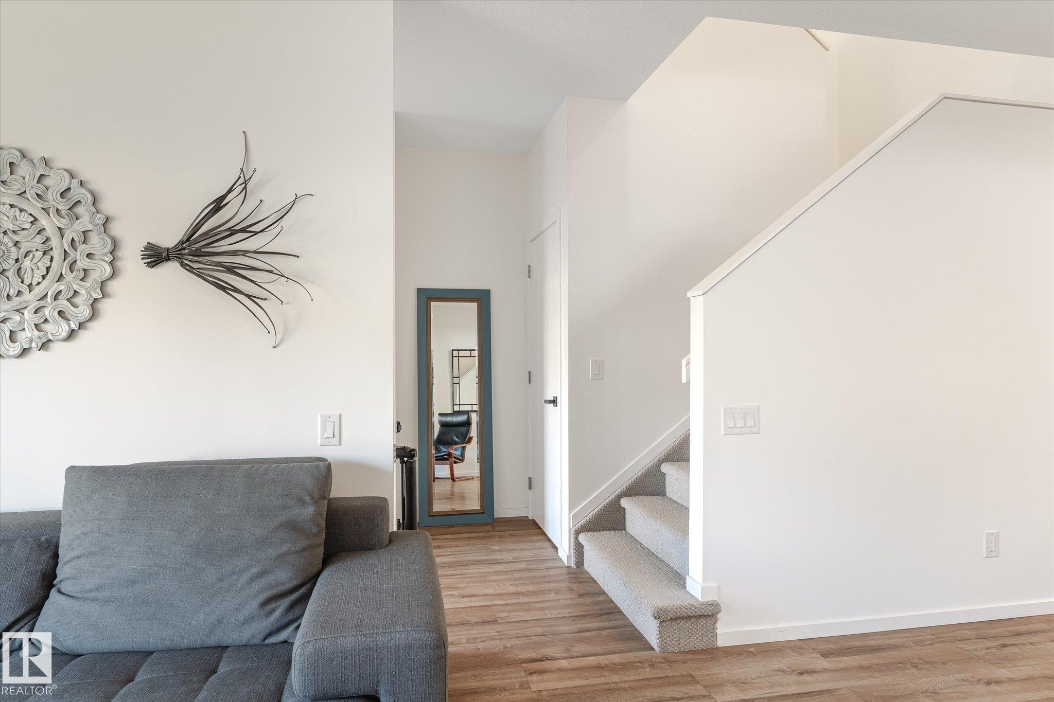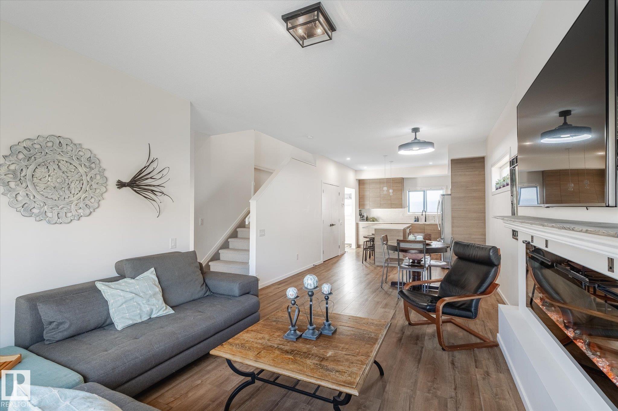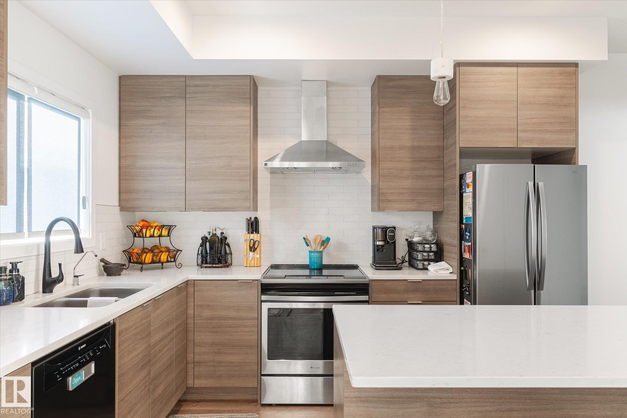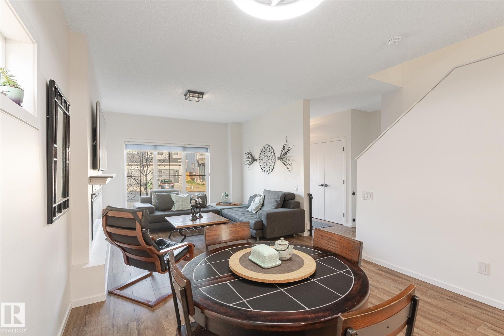 Stunning from the start! This beautiful END UNIT townhome with NO CONDO FEES is move in ready and awaits your family. Striking from the start, this curb appeal welcomes you into the 1460.21 square ft two storey beginning with the open concept main floor. This home is complete with vinyl plank floors (even upstairs!), tons of windows, and a perfectly appointed kitchen with quartz countertops and sleek cabinets to the ceiling too. The main floor also features a 2 pc bath and access to your fenced back yard with deck, lower patio pad, and of course the double garage. Upstairs is home to the main bathroom and 3 bedrooms including the primary with walk in closet, ensuite, and big windows. Located in a fabulous location near schools, parks, easy Highway 2 access, and all Beaumont has to offer.. this one is a winner!