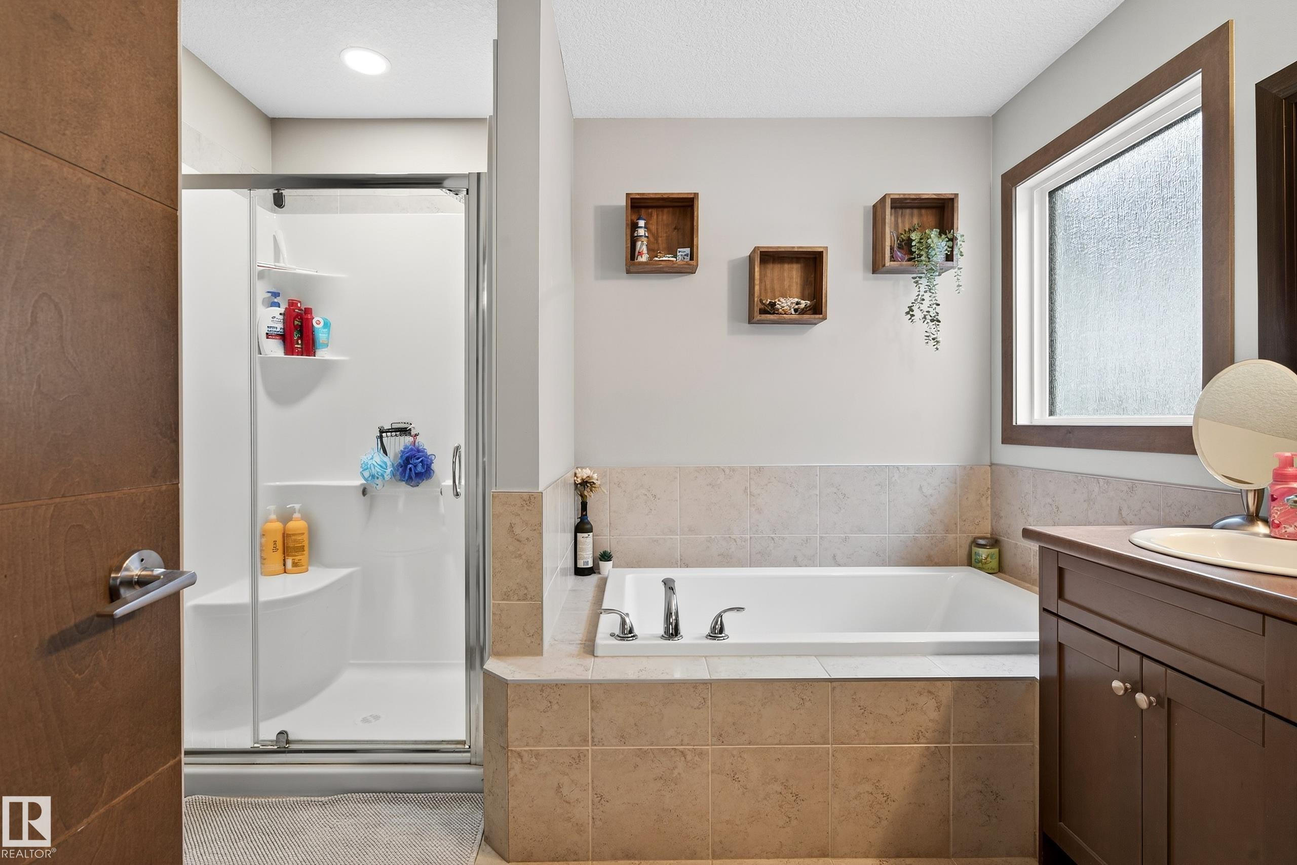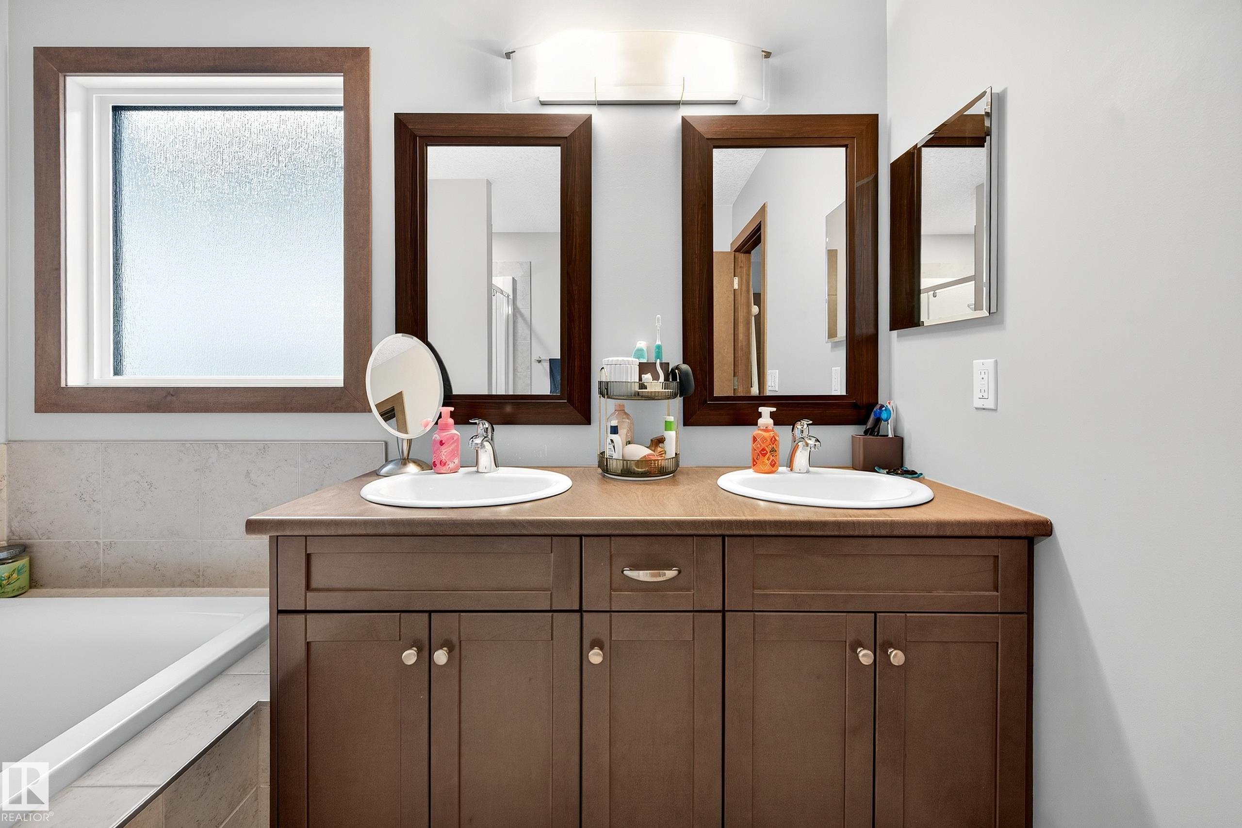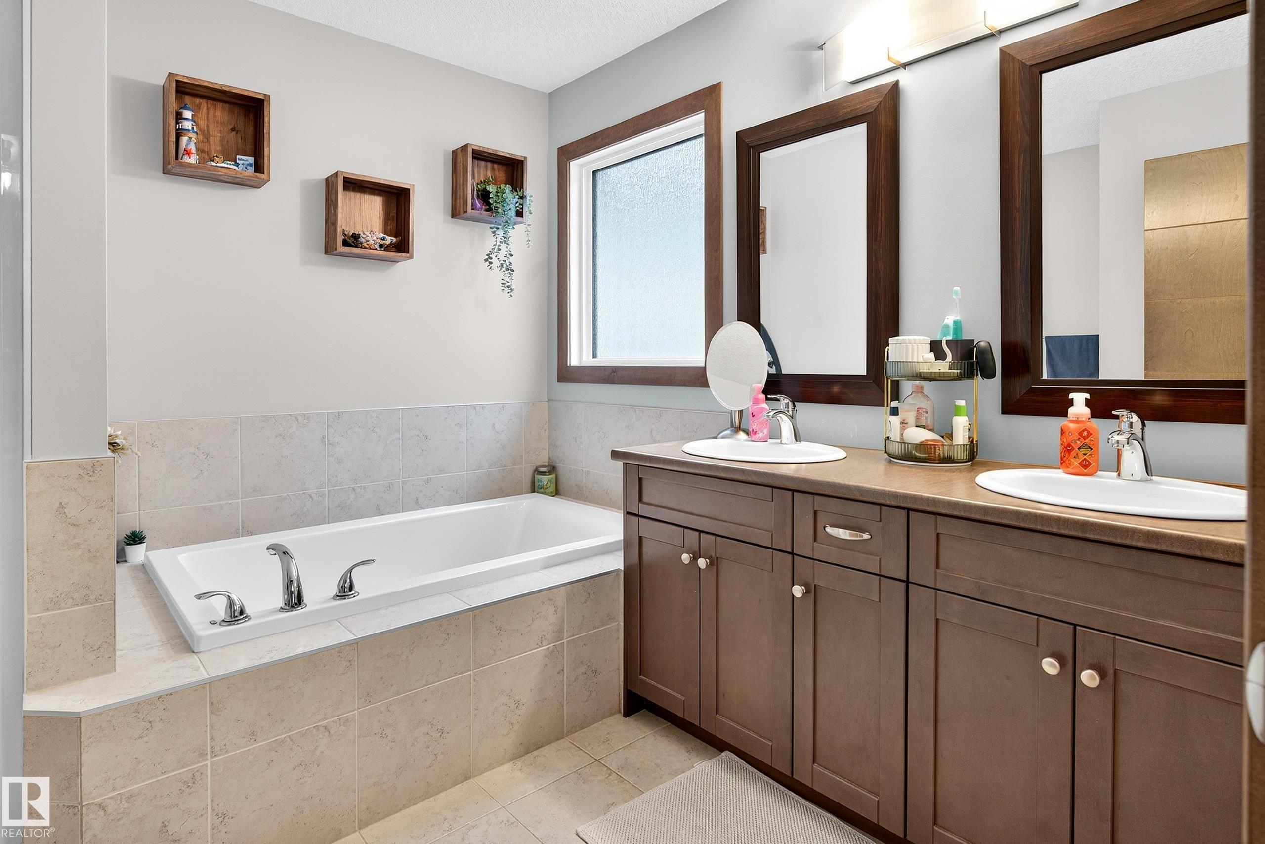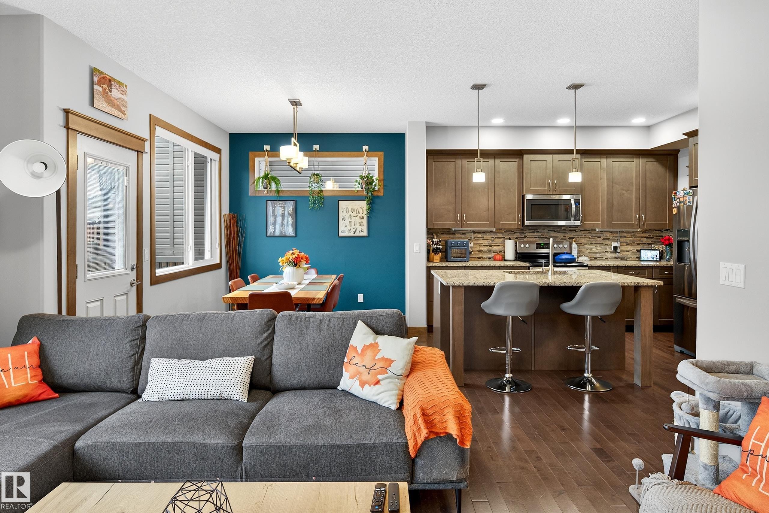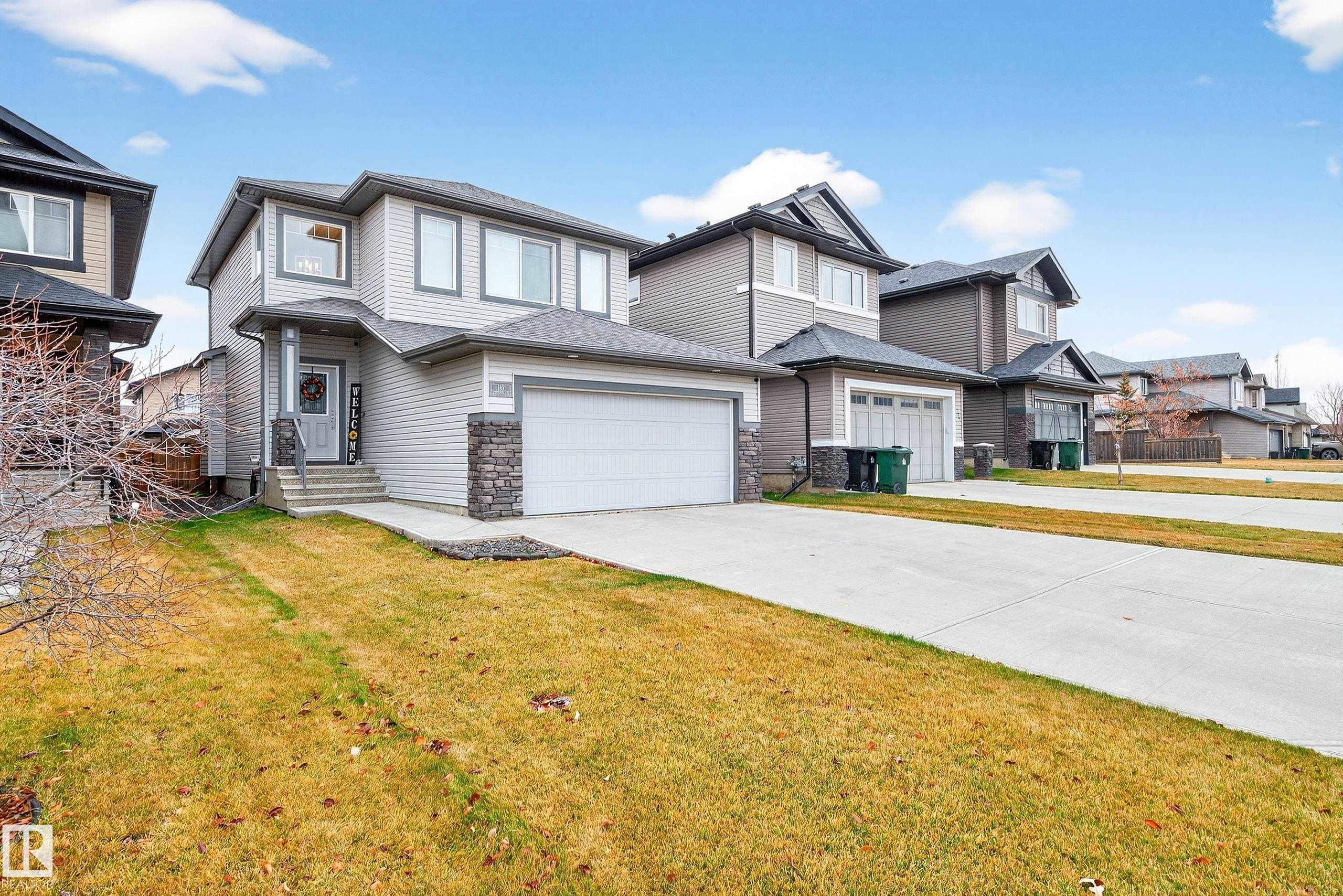 Welcome to Harvest Ridge! This highly sought-after community offers an exceptional lifestyle, featuring multiple parks, walking paths that now connect directly to Stony Plain, three nearby schools, a baseball diamond, soccer fields, and easy access to the highway -- everything you need for comfortable suburban living. Built in 2014, this two-storey, 1,600sq. ft. home boasts a long driveway with no sidewalk to shovel in the winter. As spring approaches, you'll love spending time in the fully fenced and landscaped backyard, complete with a spacious deck, perfect for entertaining. Inside, the home is fully finished and features 3 bedrooms, 3.5 bathrooms, custom blinds throughout, granite countertops, a large upstairs laundry room, gas fireplace, and central A/C. This beautiful property combines comfort, convenience, and style, a must see opportunity!