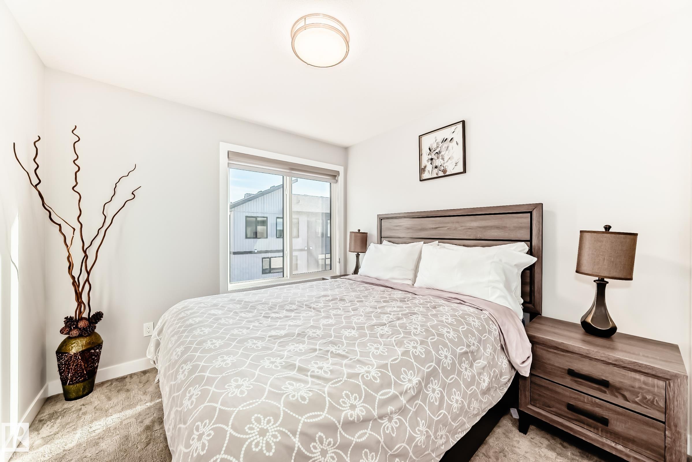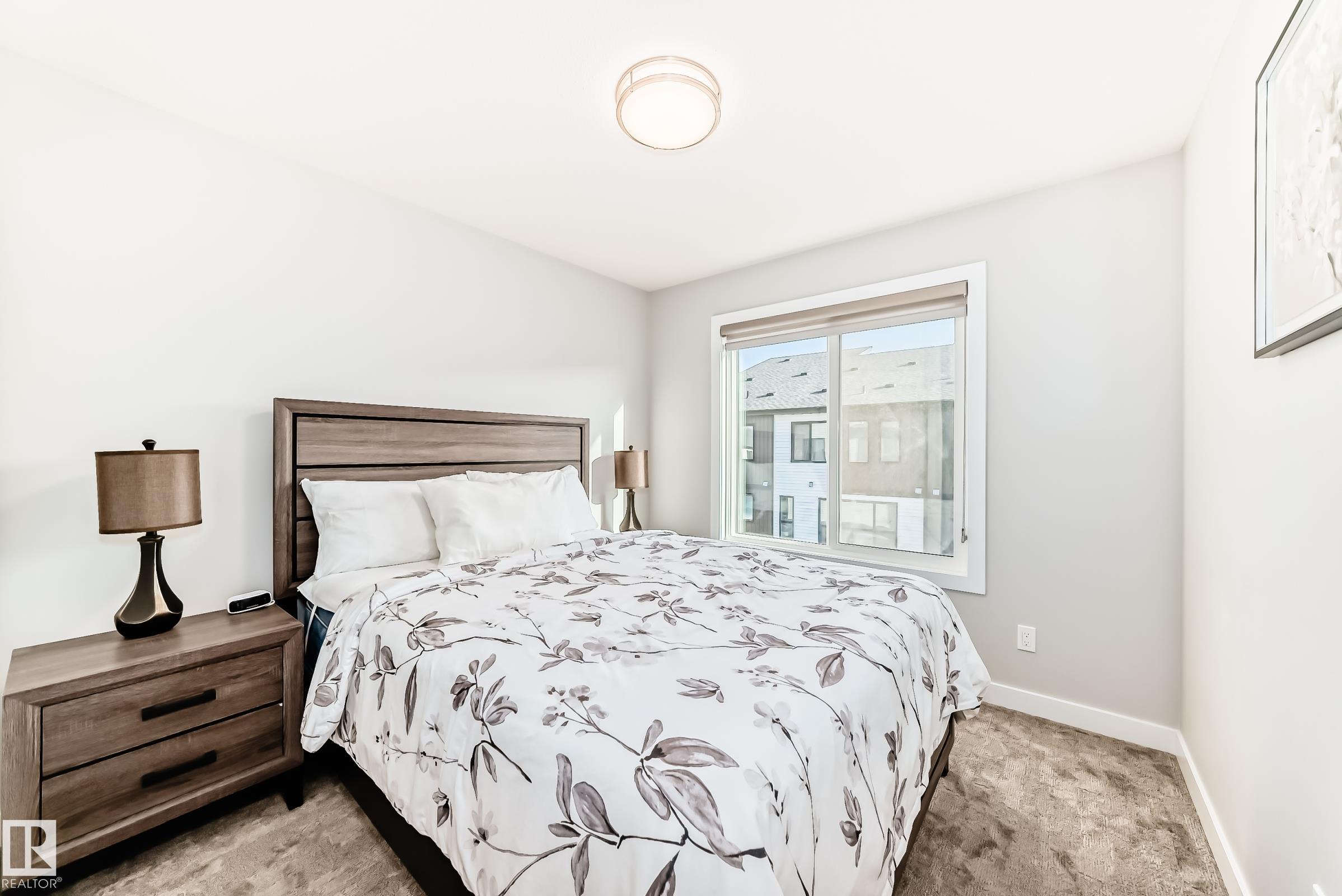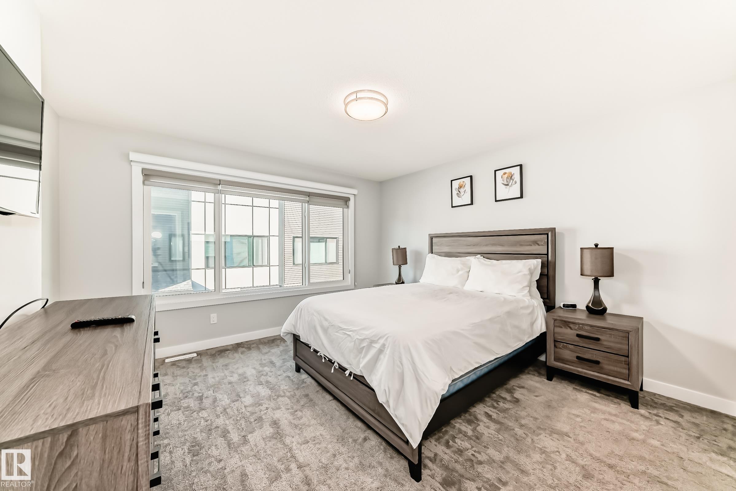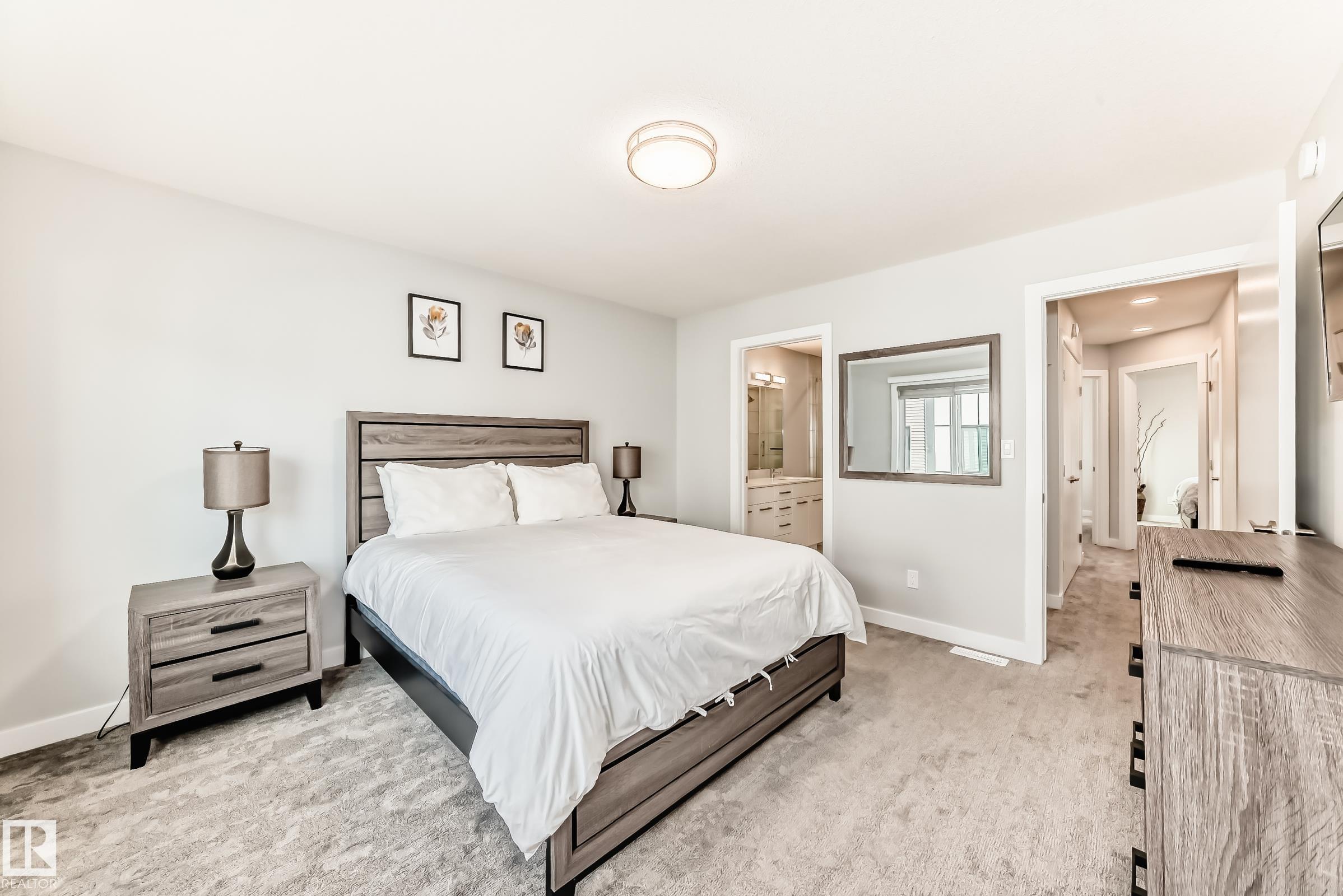 Extremely well-maintained 2-storey home in sought-after Emerald Hills, just steps from all amenities! This Paris II model by Cantiro Homes offers charming curb appeal with a front veranda and BBQ gas line. Inside, the welcoming foyer opens to a stunning living room with soaring vaulted ceilings, highlighted by an electric fireplace with a floor to ceiling tile surround. The bright kitchen overlooks the living room and features stainless steel appliances, a central island, and quartz countertops. Upstairs, the spacious primary suite boasts a walk-in closet and 4 piece ensuite. Two additional bedrooms and the convenience of upper-level laundry complete the Upstairs. The basement provides a large flex space perfect for a home office, gym, or extra storage along with direct access to the double attached garage.
