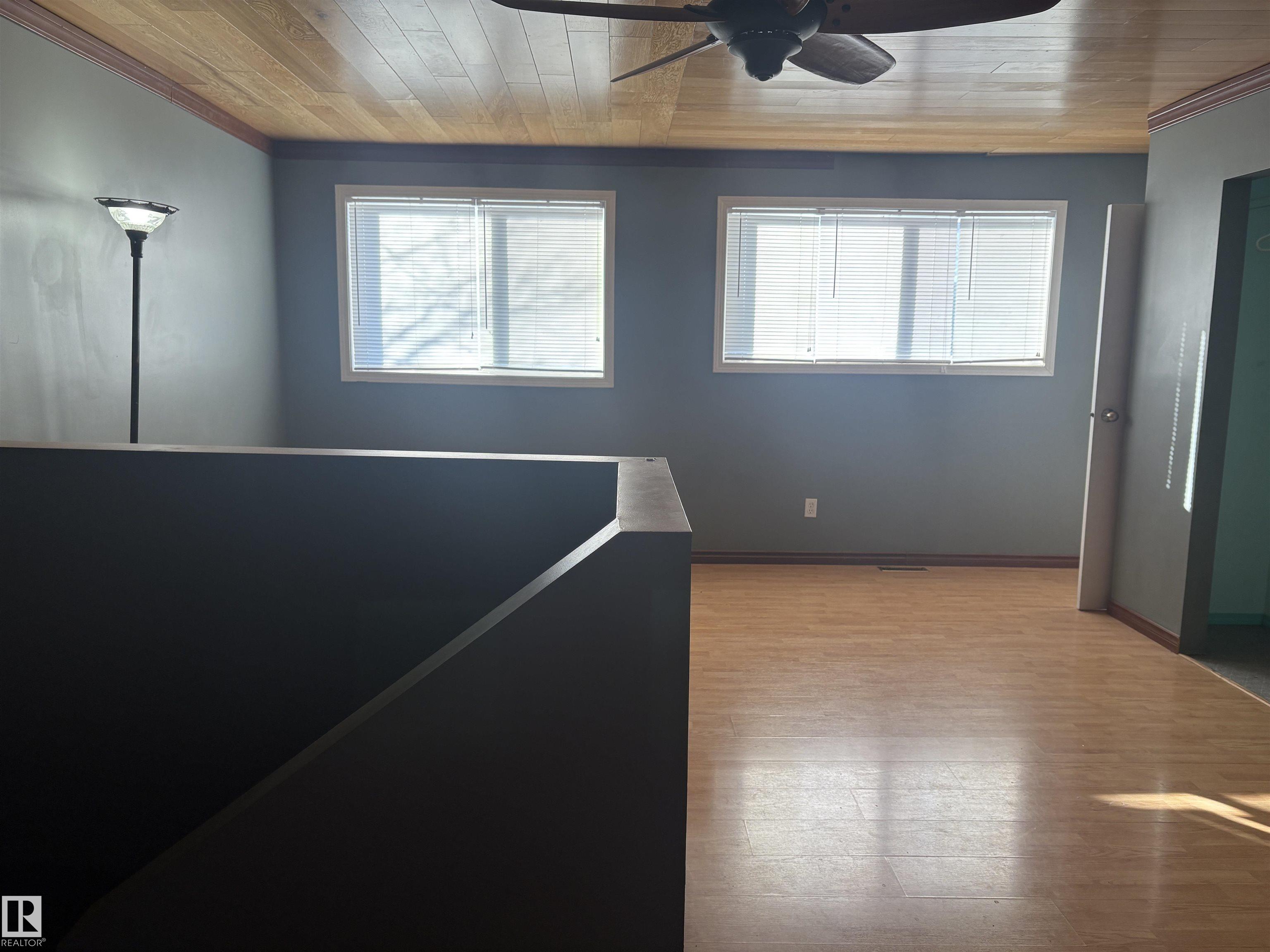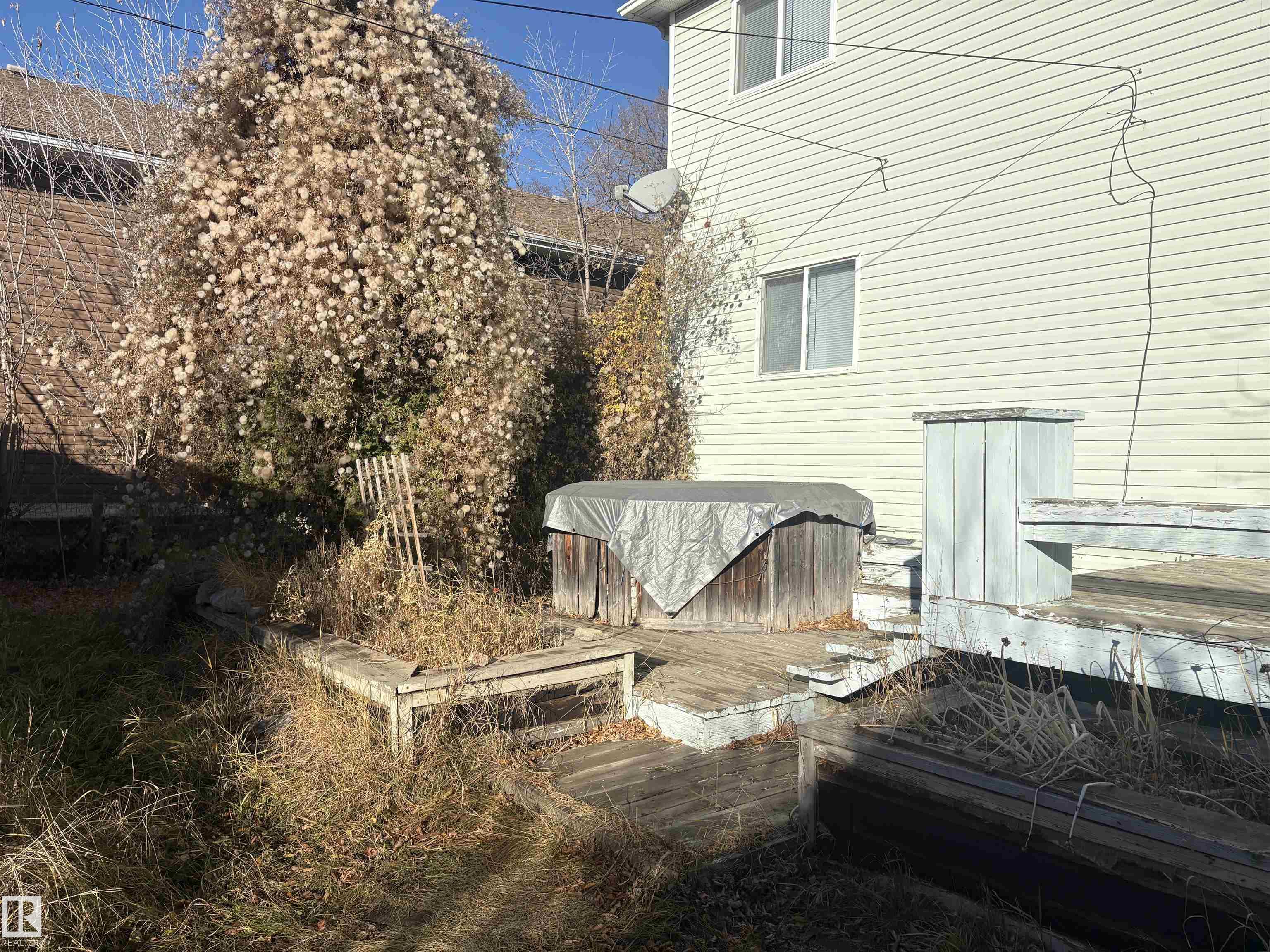 Great opportunity to own this 3-bedroom, 2-bathroom home with a double attached garage and just under 1,500 sq ft of living space. The entire upper floor can be used as a spacious primary suite with a 4-piece bath or as a fun play space for the kids, offering flexibility to fit your lifestyle. The main floor features an open kitchen and living room, two bedrooms, a 4-piece bath, and a convenient space for a home office just off the living area. Step outside to a private, treed backyard with a deck and hot tub, perfect for relaxing or entertaining. Upgrades include some windows, a high-efficiency furnace, newer appliances, and two jetted tubs. Located in a quiet Redwater neighborhood close to schools, parks, and all amenities. Redwater offers K-12 schools and is about 30 minutes north of Edmonton.