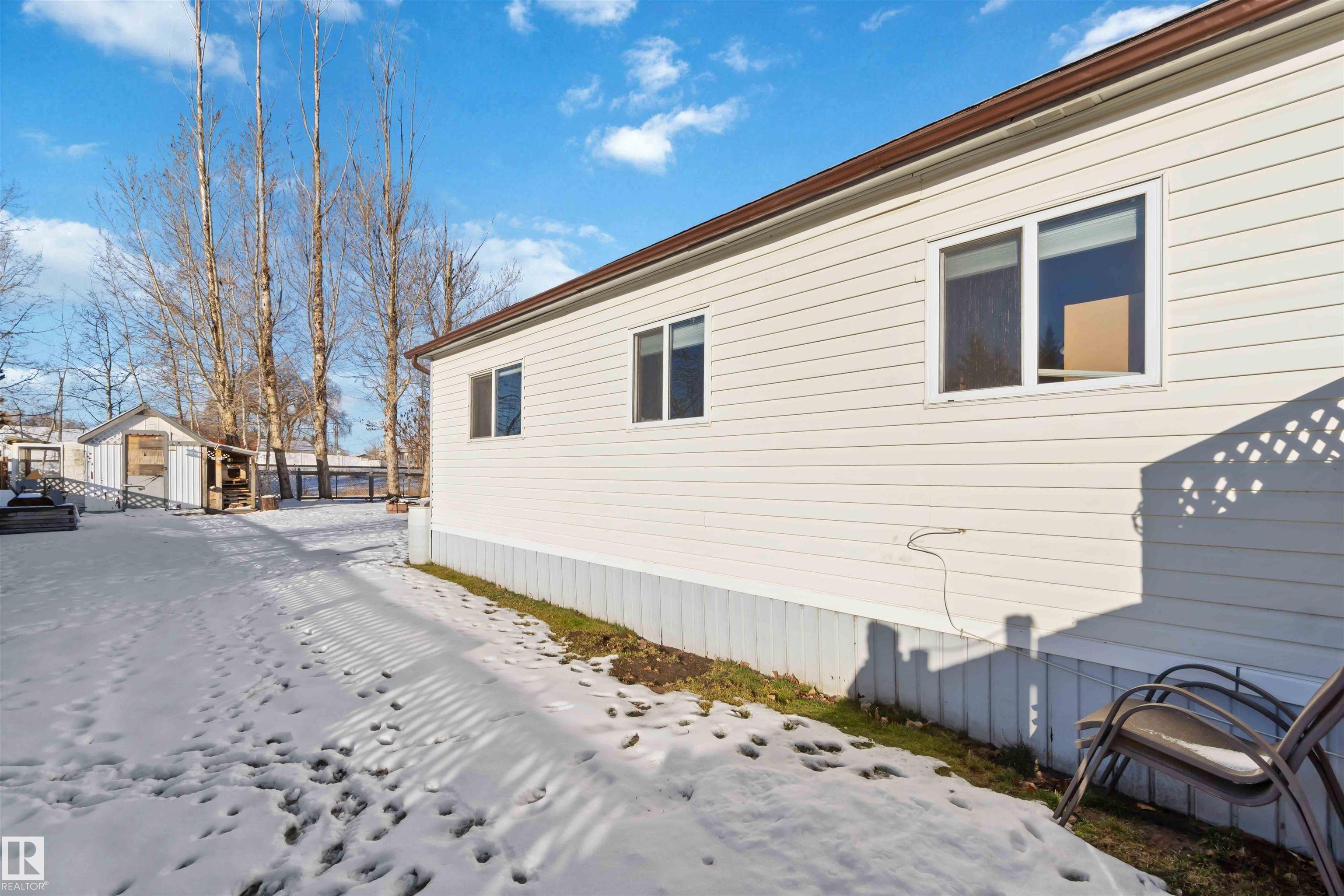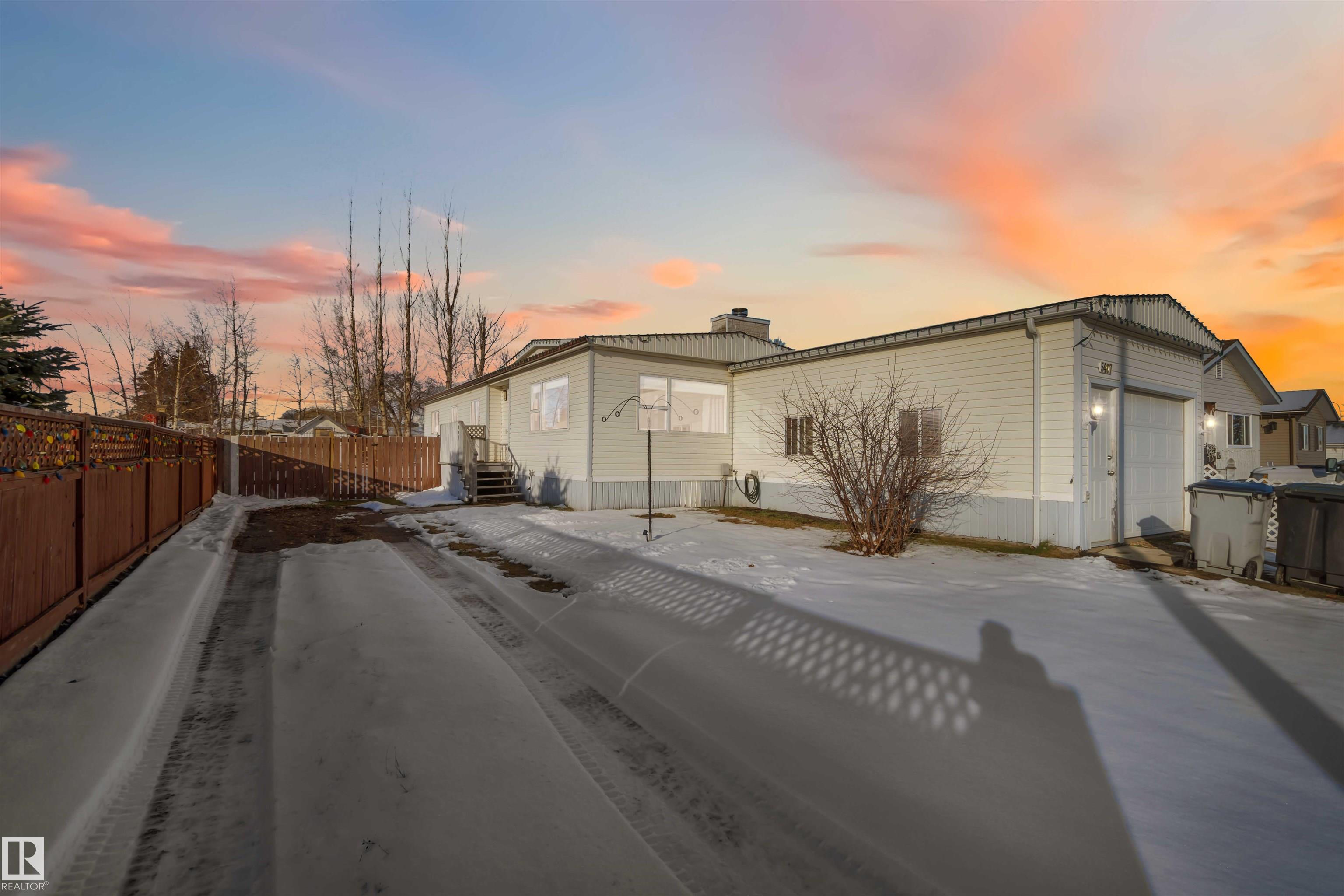 Well-Maintained 3 Bedroom Home with Heated Attached Garage! This 1,194 sq ft home features a single attached heated garage--with the garage heater installed just last year--and a large fenced lot that you own (no lot fees!). Inside, the home offers a bright living room with a cozy corner fireplace, a kitchen with newer stainless steel appliances and patio doors leading to the side deck, plus a 4-piece main bath and laundry room with exterior access. The primary bedroom includes a walk-in closet and 3-piece ensuite, while two additional bedrooms provide plenty of space for family or guests. A comfortable, move-in-ready home with great value and a functional layout!